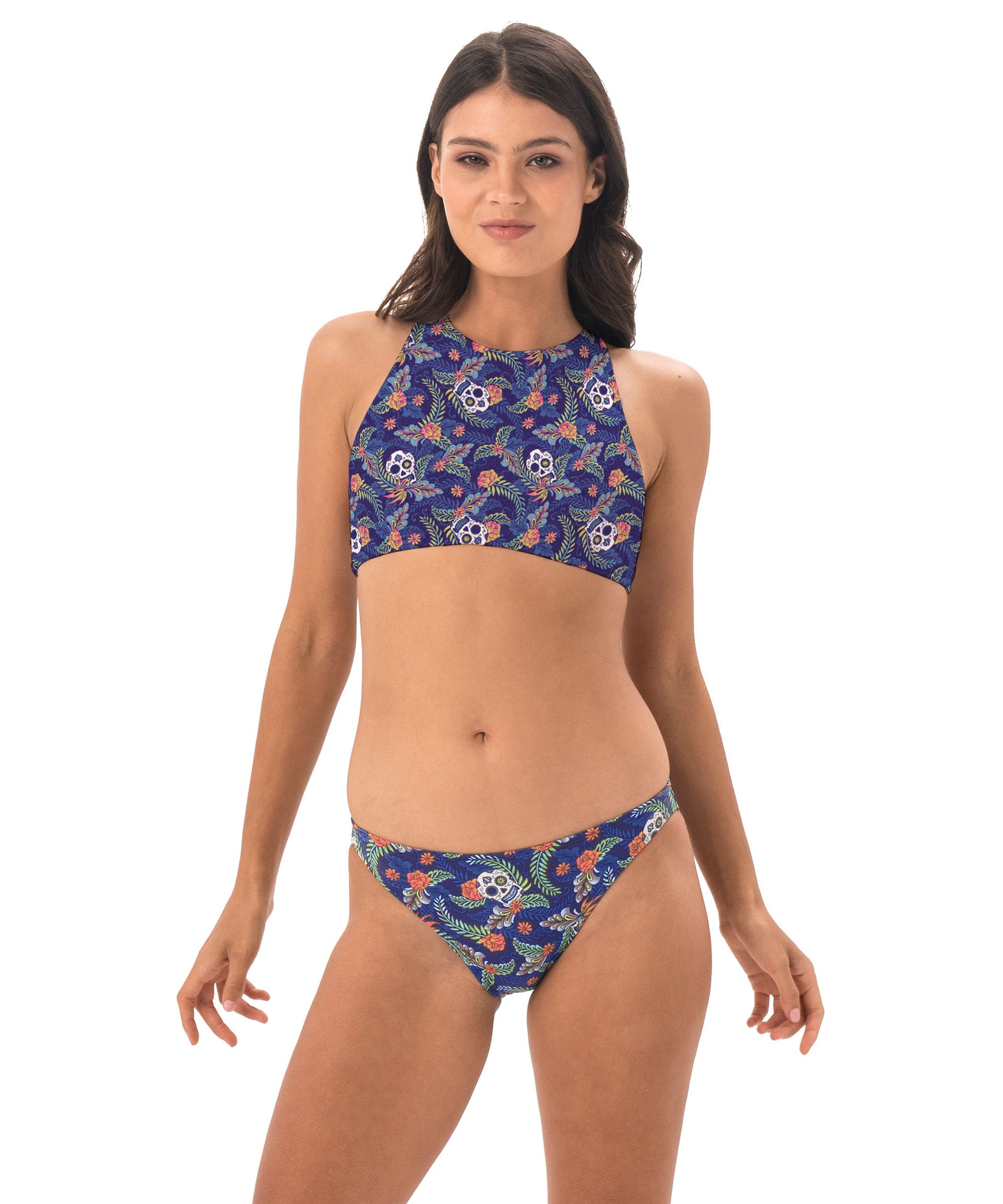 Every surfer needs the Surf Crop Bra! It has a high neck and plenty of support to help you even in the roughest waves. Perfect for surfing! Adjustable crossback, high neck. Polyamide elastane 80-20%.